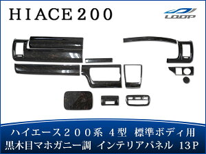 トヨタ ハイエース 200系 4型 S-GL スーパーGR 標準 ボディ用 特別仕様車 ダークプライム 専用 インテリアパネル 13P 内装 toyota 車用品 カー用品 車パーツ インパネ ガーニッシュ カスタム パーツ セット 黒木目 マホガニー調 ブラック 黒 おしゃれ ABS樹脂 H25.12〜