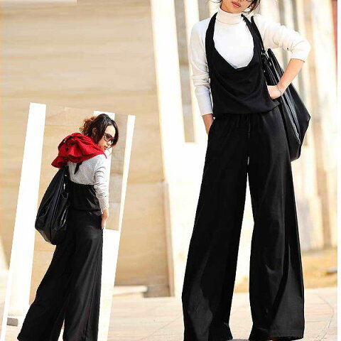 ジャンプスーツ オーバーオール オールインワン サロペット つなぎ ブラック パンツスーツ きれいめ 上品 大人 送料無料
