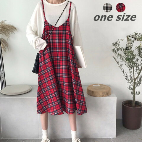 送料無料 チェックロング キャミワンピース  レディース キャミワンピ ロング丈 マキシ丈 バックスリット レイヤード チェック柄 秋冬 秋物 ワンピ  おしゃれ 可愛い オールインワン キャミソール ワンピース キャミワンピ ファッション 重ね