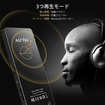 【送料無料】AGPTEK MP3プレーヤー Bluetooth対応 内蔵スピーカー 音楽プレーヤー FM/録音ショートカットボタン付 ロスレス音質 高音質 デジタルオーディオプレイヤー 8つボタン&独立音量ボタン スピーカー内臓 内蔵8GB 128GBマイクロSDカードBに対応可 ブラック M6B
