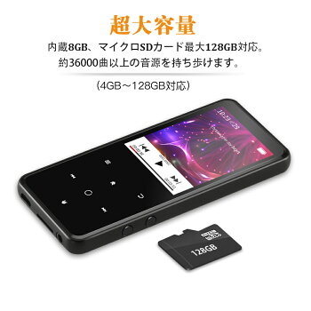 AGPTEK 音楽プレーヤー Bluetooth対応 MP3プレーヤー bluetooth HIFI高音質 2.4 インチ 大画面 FMラジオ/録音 タッチパネル 内蔵8GB マイクロSDカード対応 イヤホン付属 bluetooth改良版 ブラック C2 クリスマスプレゼント ギフト