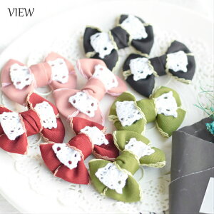 【犬 ヘアアクセサリー】 リボン レース ヘアゴム 2点セット A 髪飾り ハンドメイド