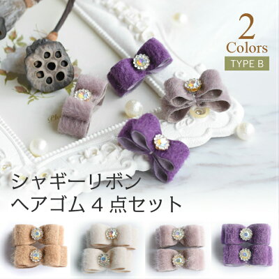 【犬 ヘアアクセサリー】 シャギー リボン ヘアゴム 4点セット 髪飾り B エレガント