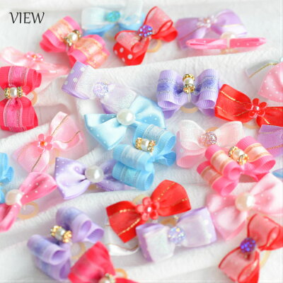 【犬 ヘアアクセサリー】 リボン ヘアゴム 8点セット 髪飾り C 姫 キュート