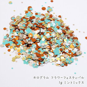 【39%OFF】ホログラム フラワーフェスティバル 1g ミントミックス //レジン封入パーツ ネイルアート用品 ジェルネイル材料 ミックス アソート ランダム ハート 六角形 ヘキサゴン 丸型 ラウンド 花型 フラワー グリーン オレンジ ホワイト イエロー 緑色 橙色 白色 黄色