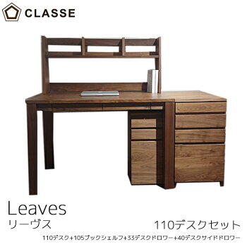 レグナテック 2020年度 学習机 Leaves/リーヴス 幅110 デスクセット ウォールナット 平机 キャビネット ドロワー シンプル 学習デスク/勉強机【受注生産】