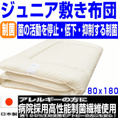 2〜10倍ポイント/即発送可/【送料無料】病院採用制菌仕様 敷き布団 布団 ジュニア[80x180cm] アレルギーの方に日本製 抗菌から制菌・防ダニ・防臭 ジュニアサイズ 洗える ドクター布団 ジュニア子供用小さめ 硬質 敷布団/